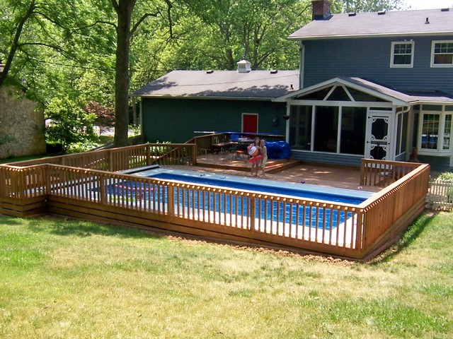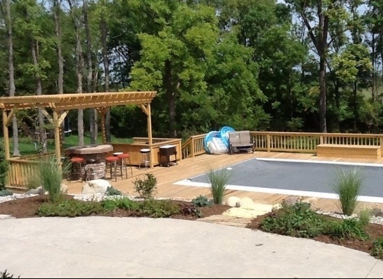 YOUR ABOVE GROUND POOL CAN INTEGRATE SEAMLESSLY WITH YOUR HOME AND LANDSCAPE BY INCORPORATING A STYLISH DECK AND OTHER GREAT CUSTOM FEATURES.